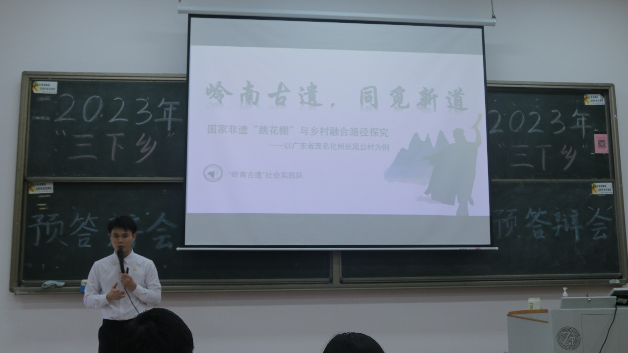 岭南古遗社会实践队,他们以“携岭南非遗文化,同觅传承新通道”为主题,围绕非遗文化“跳花棚”展开活动,希望能够通过这次下乡活动,为非遗文化与乡村振兴发展提供新路径。