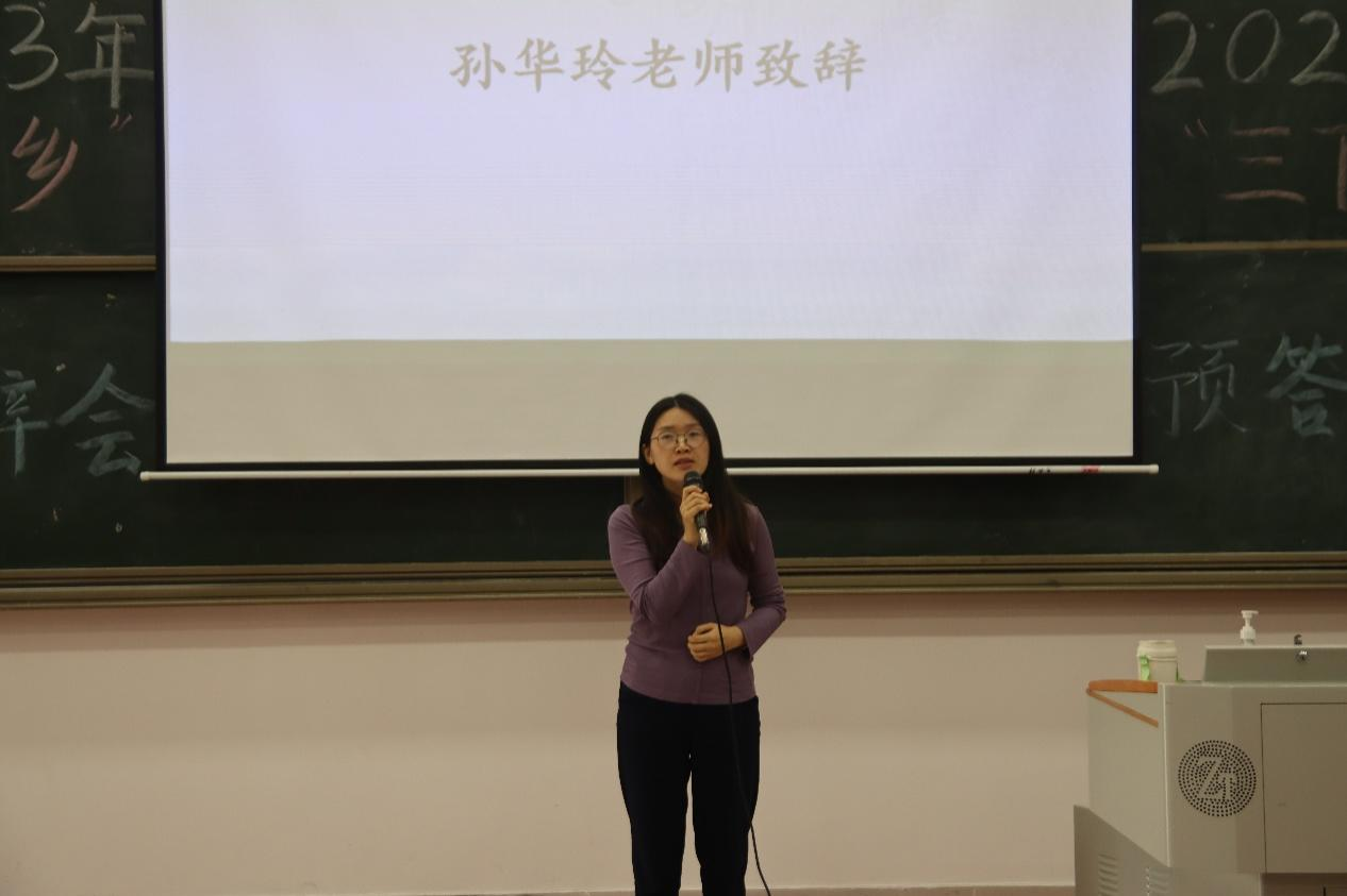 会议开始前,孙华玲老师致辞并对前来参加答辩会的评委嘉宾和实践团队表示感谢。