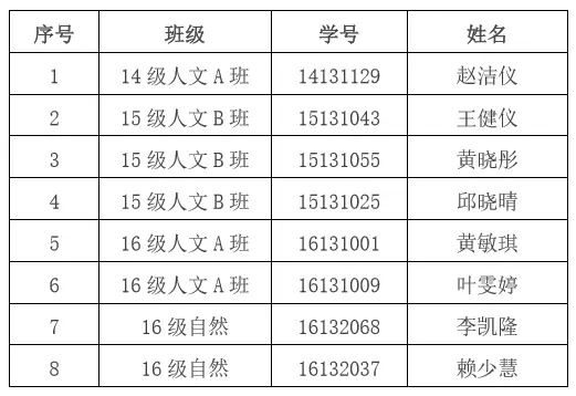 具体名单公示如下: