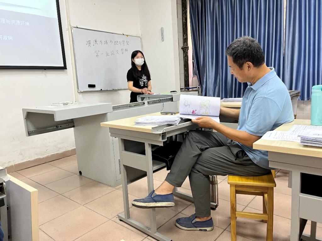4月18日上午,yl8cc永利线路检测中心2023届毕业生第一批论文答辩在广州校区中区绘图室1、绘图室2展开。yl8cc永利线路检测中心教学督导陈子燊教授、yl8cc永利线路检测中心院长关欣教授、副院长李玲副教授、副院长宋云副教授、人文地理与城乡规划专业副主任石莹怡、自然地理与资源环境专业副主任唐波等各专业指导老师参与本次答辩,院内领导对这次答辩给予高度重视,出席到各个答辩教室,指导答辩工作的进程,保证答辩会高质高量的开展。督导陈子燊教授对本次答辩现场、同学们的毕业论文(设计)选题、答辩效果等都作出了较高的评价。