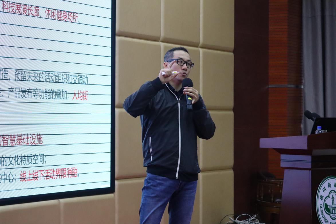 陈仪老师还向同学们分享了数字经济时代下城市运营的未来发展方向。他说道,未来城市应该从动态‘三维’规划、‘四维’运营、‘五维’服务入手,结合数字时代背景,注重城市的整体布局规划,打造智慧城市,消除线上线下界限,从而提高生产与生活效率。在未来成长过程中要推进城市能量环、都市健康网、未来社区等各类要素的构建,以进一步推动数字城市的发展。